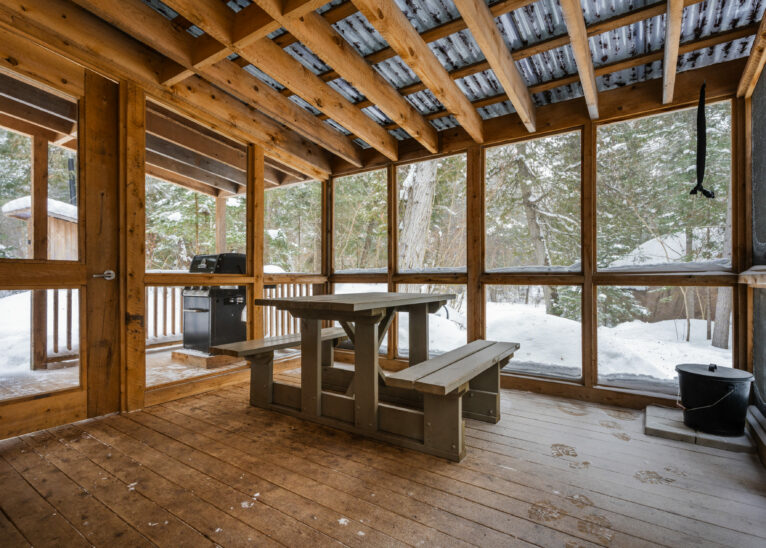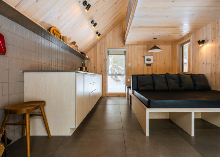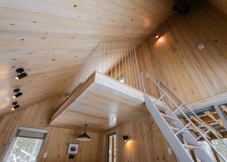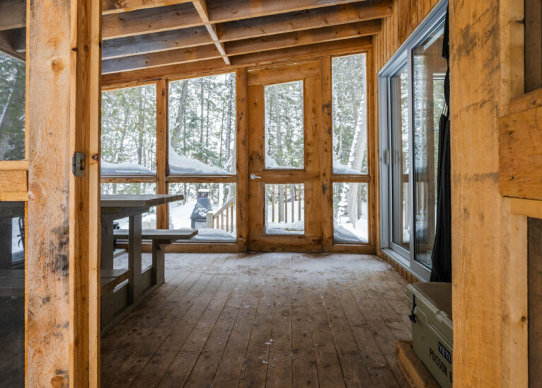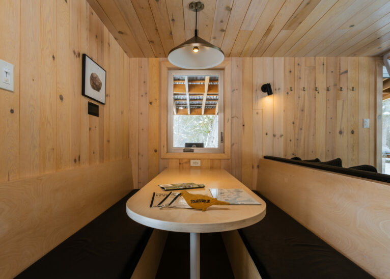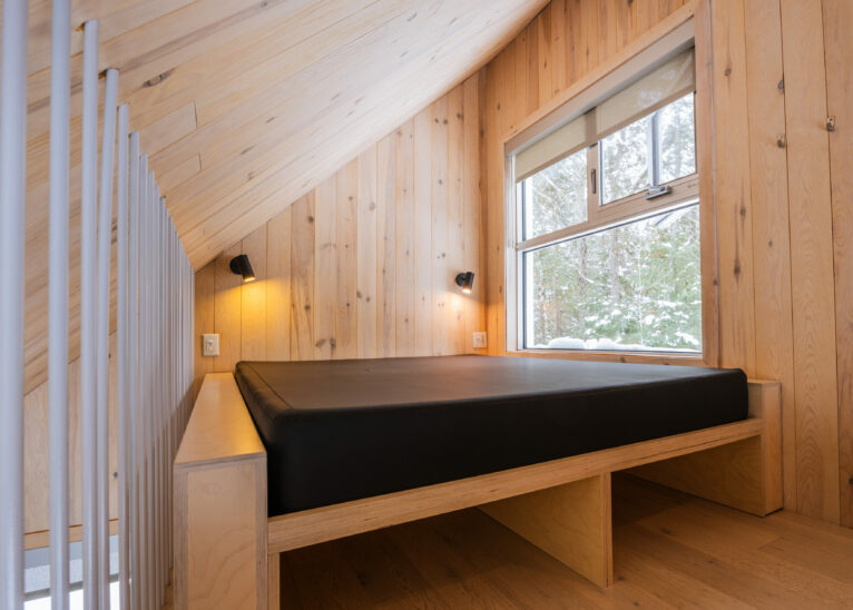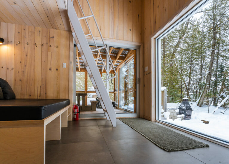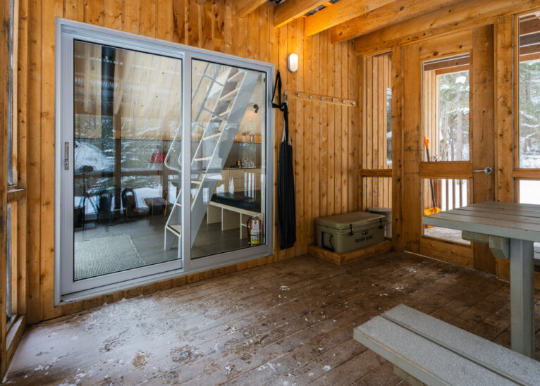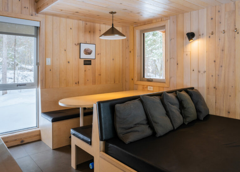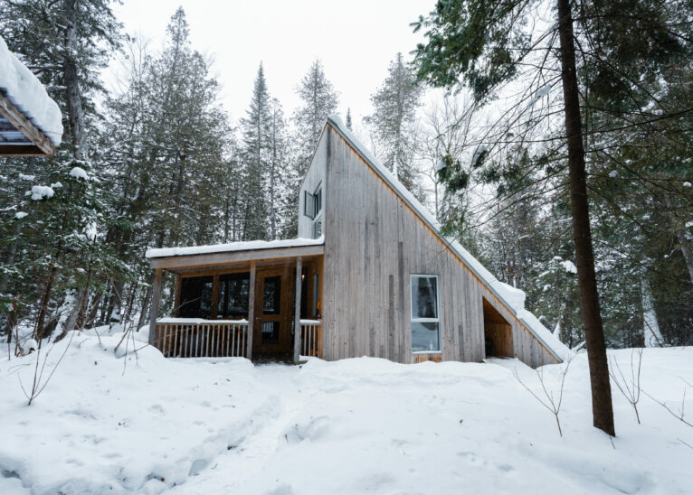 Following in the path of our signature triangular design, the Tourterelle offers private access to the Poisson Blanc reservoir. Located close to an impressive boulder for climbers in quest of new projects, it’s the ideal place to be active by day and contemplative by night all year long. Accessible only on foot or by snowshoe, with a cart or sled to carry your luggage to your destination.